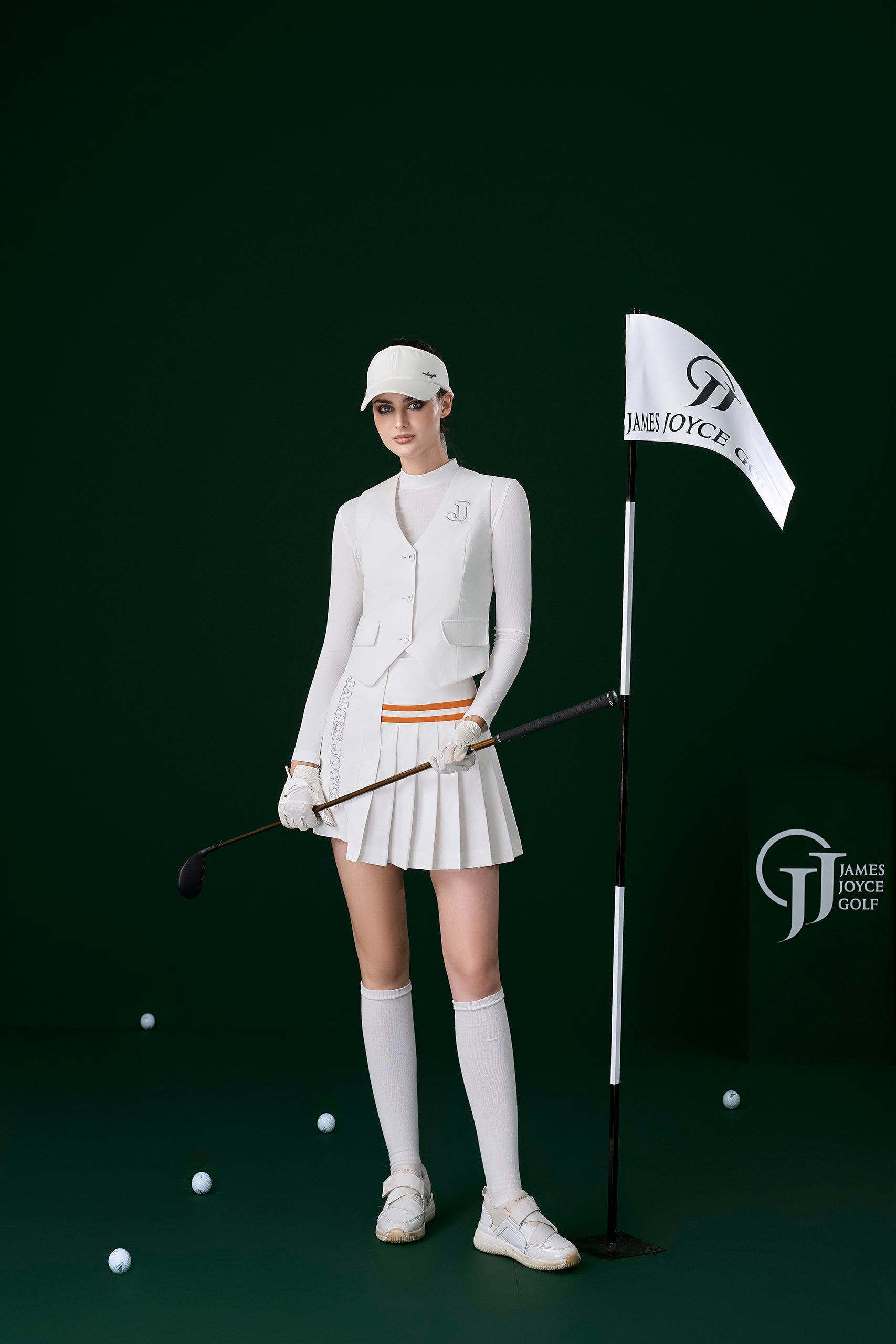 J 화이트 플리츠 스커트