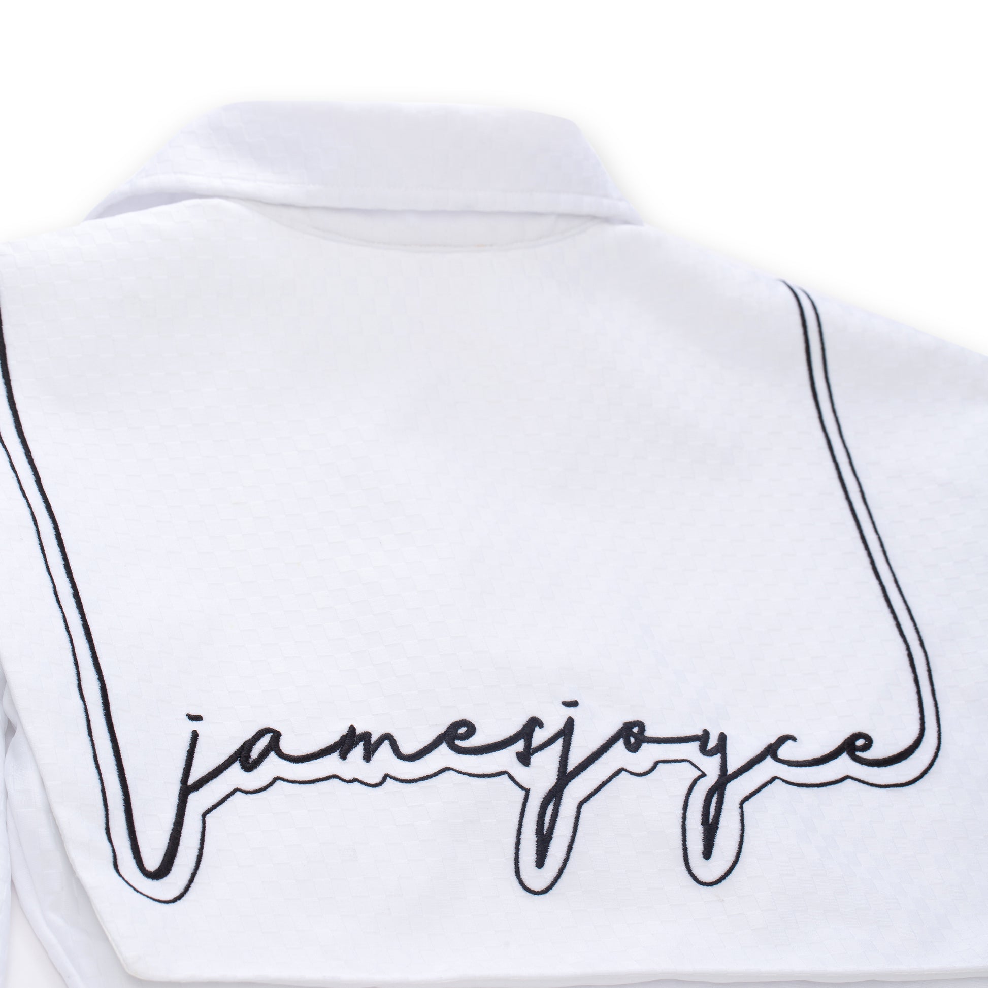 - Embroidered on back cape